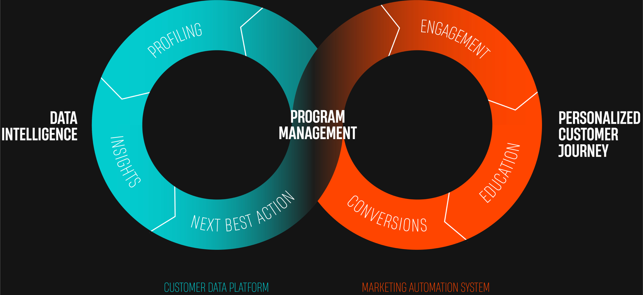 Technologisches Herzstück von Closed Loop Smarketing Automation ist neben dem eigentlichen Marketing Automation System die Customer Data Platform, die als Single Point of Truth bereichs-, system- und anwendungsübergreifend alle Nutzerdaten zu aussagekräftigen Profilen zusammenführt.